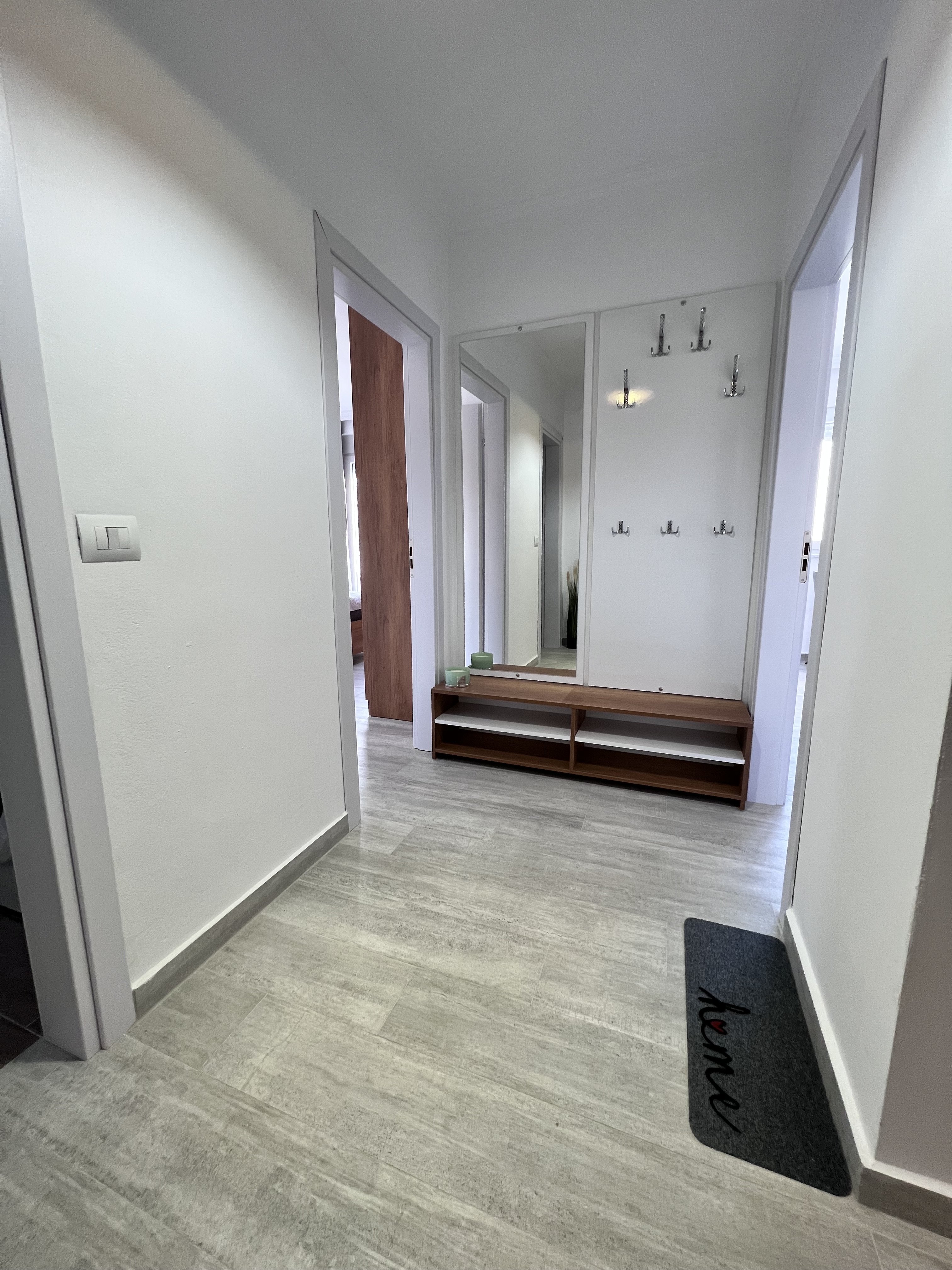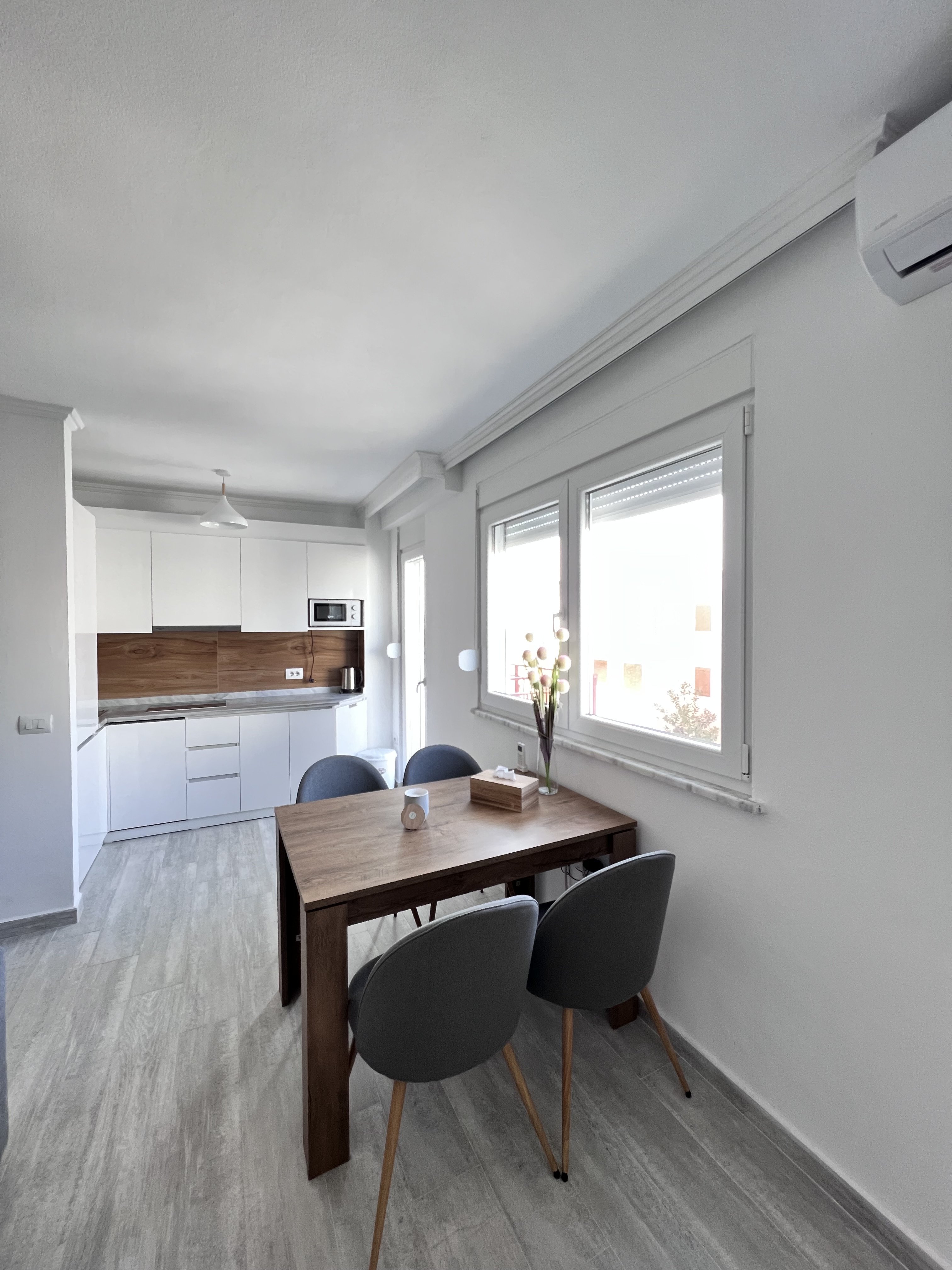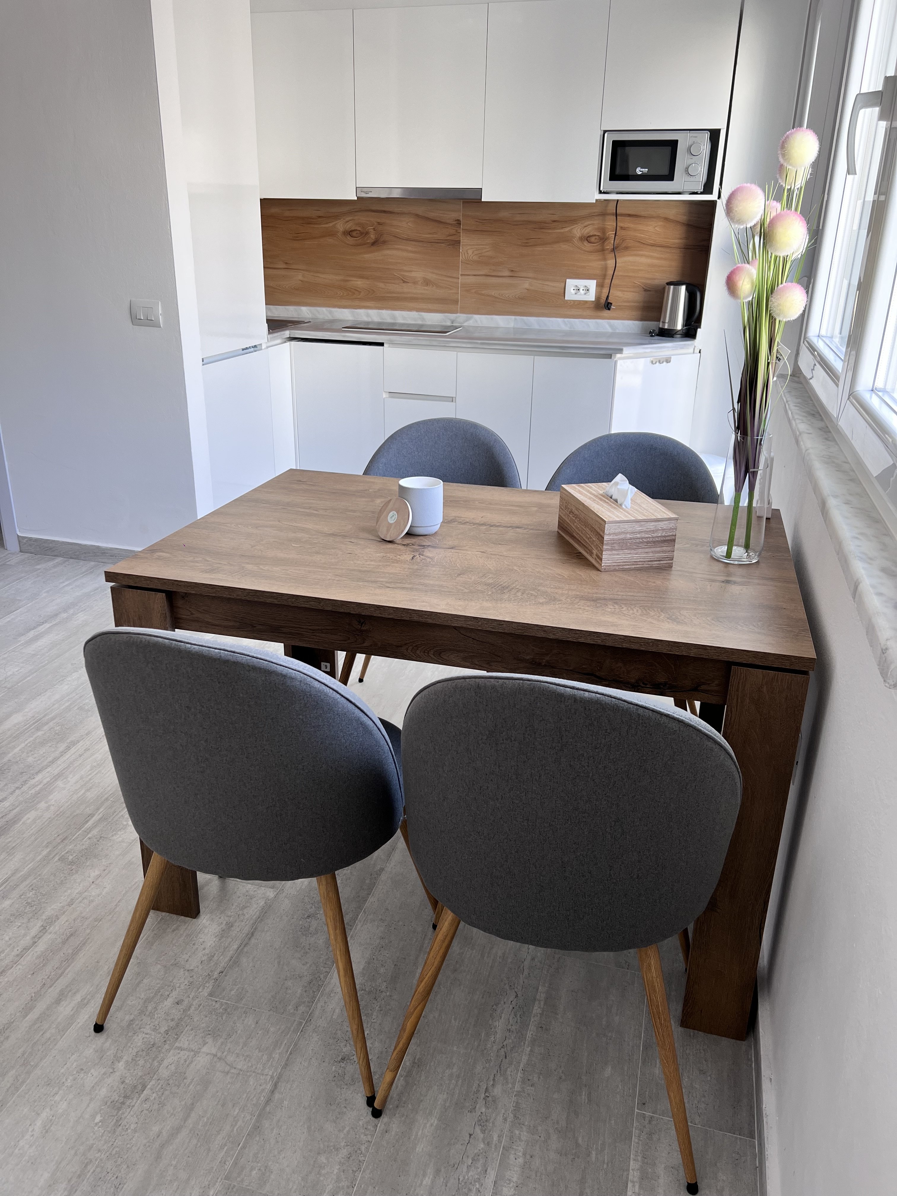 Apartmán se nachází ve 4. podlaží (bez výtahu :) ) Schody jsou dobré na zadek a postavu celkově. Parkování je možné v ulici, v červenci a srpnu to zabere chvilku, ale není to jak Praha, takže ok. Dům je 70m od moře, na které se můžete koukat z části balkónu. Najdete zde vybavenou kuchyň pro základní přežití včetně myčky, přece tu nebudete mýt nádobí na návštěvě, že jo. Všude klima, telka taky jede a wifi šlape.